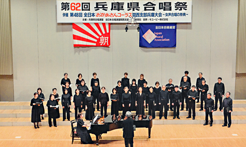 - 年間行事として、兵庫県合唱祭、地域の音楽会(年2回)、関西合唱フェスティバル等、年間行事を中心に、その他のイベント出演も積極的に取り組んでいます。